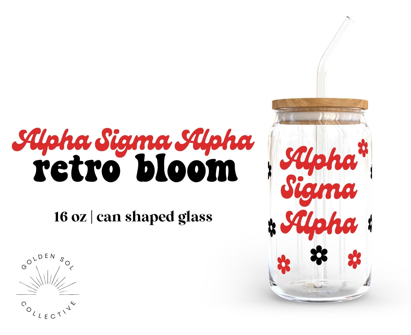 Alpha Sigma Alpha Sorority 16oz Retro Bloom Can Shaped Glass