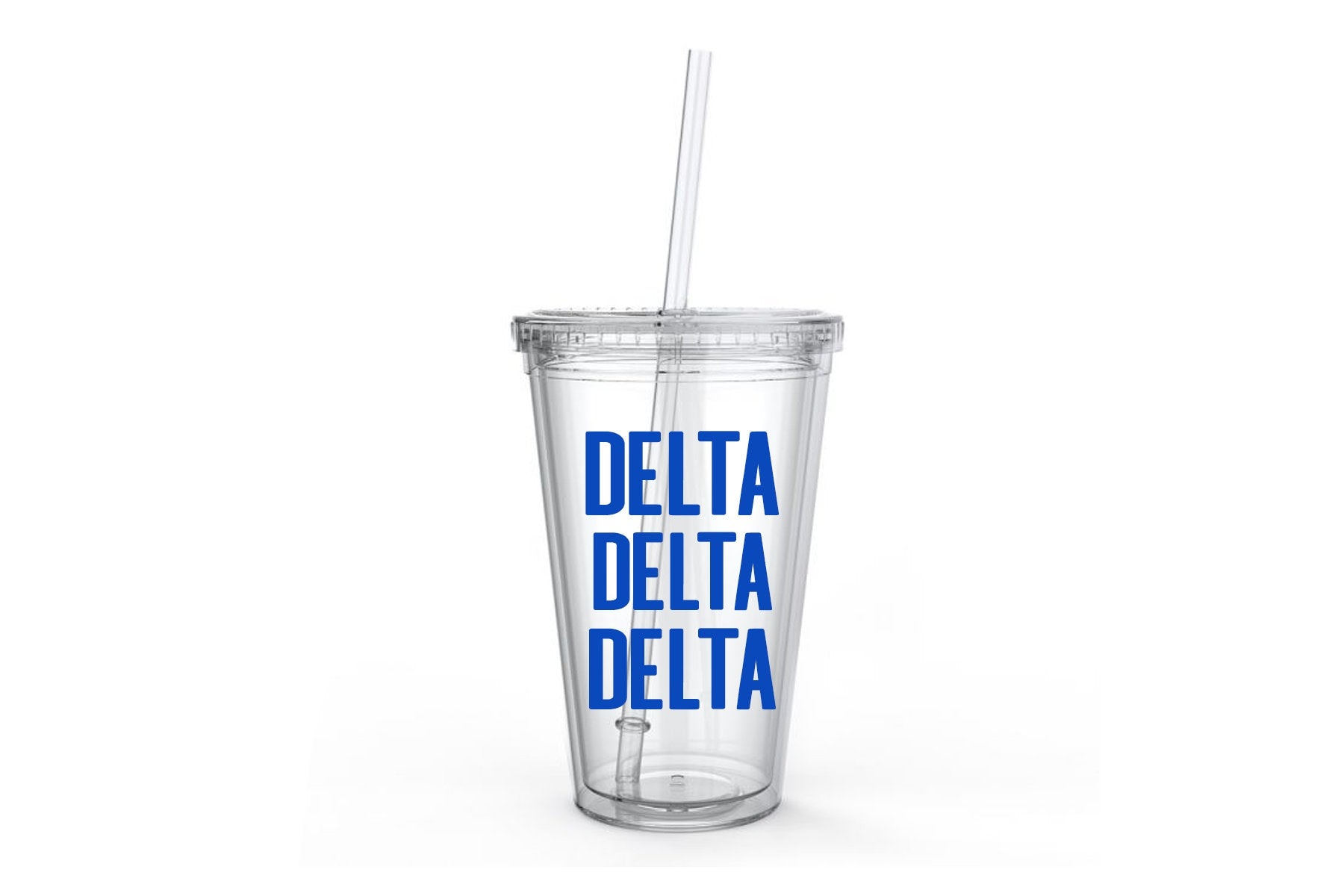 Elevate your sorority experience with our Classic Delta Delta Delta tumbler. Crafted with durable double walls to prevent condensation, this 16-ounce tumbler is perfect for all your on-the-go needs. Complete with a twist-on lid and a convenient straw, it's both stylish and functional. The Tri Delta logo comes in 11 different colors including Hot Pink, Dee