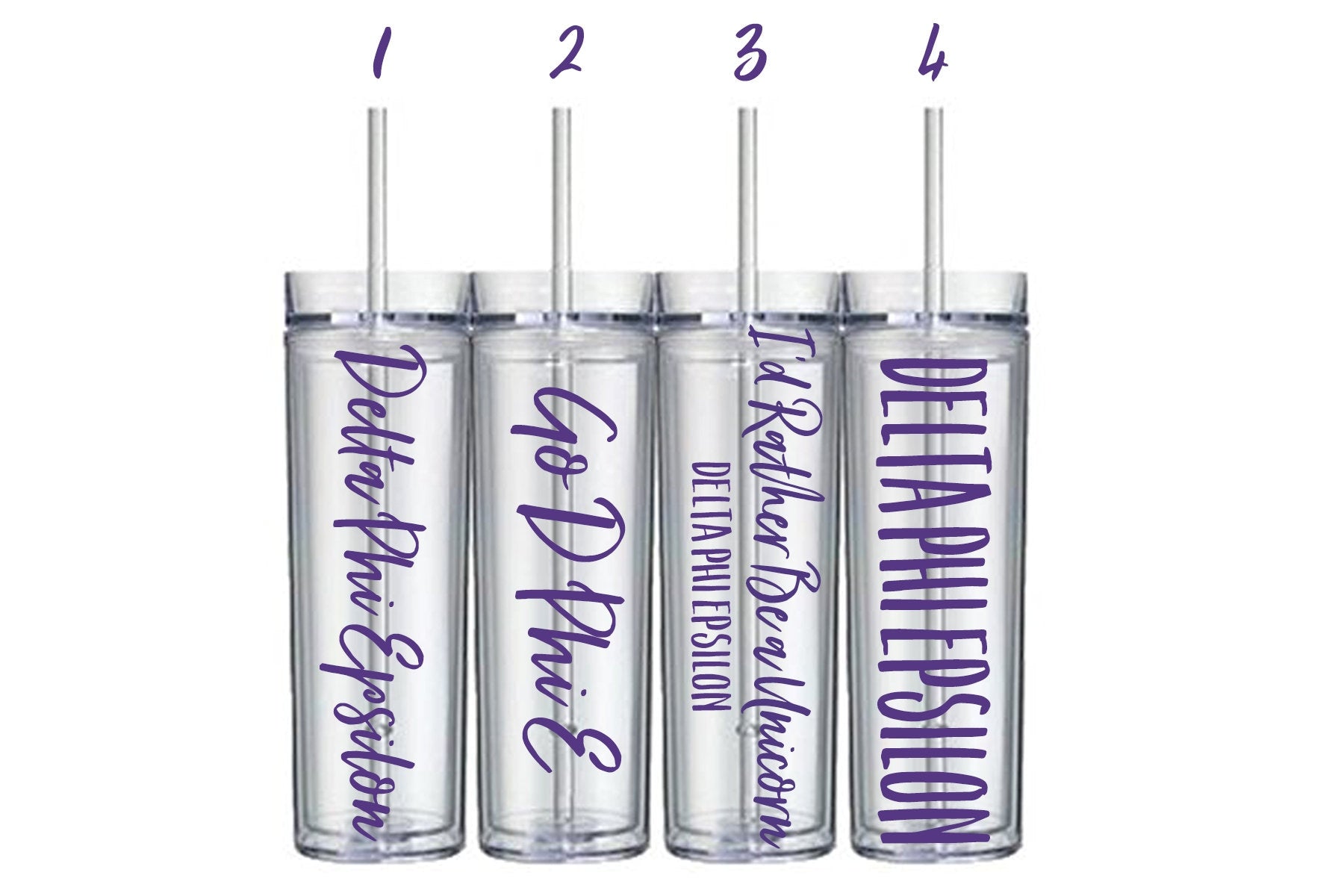Elevate your sorority experience with our Delta Phi Epsilon Customizable 16 oz Tumbler. Crafted with durable double walls to prevent condensation, this 16-ounce tumbler is perfect for all your on-the-go needs. Complete with a twist-on lid and a convenient straw, it's both stylish and functional. Choose from 4 different designs and 11 different colors including Hot Pink, Deep Purple, Sky Blue, Black, Blue, Lime Green, Red, Yellow, Lavender, Soft Pink and White.