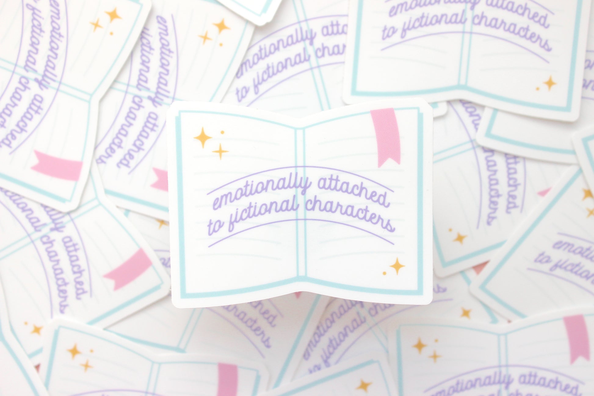 Add a touch of literary charm to your laptop, water bottle, or phone case with the Emotionally Attached to Fictional Characters laptop sticker. Printed on high-quality vinyl, this sticker is perfect for book lovers who find themselves falling in love with the characters and stories they read. (Guilty as charged!)