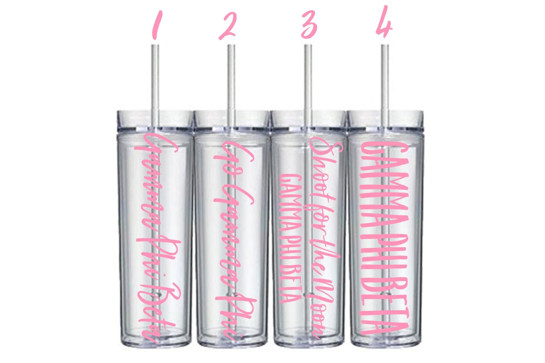 Elevate your sorority experience with our Gamma Phi Beta Customizable 16 oz Tumbler. Crafted with durable double walls to prevent condensation, this 16-ounce tumbler is perfect for all your on-the-go needs. Complete with a twist-on lid and a convenient straw, it's both stylish and functional. Choose from 4 different designs and 11 different colors including Hot Pink, Deep Purple, Sky Blue, Black, Blue, Lime Green, Red, Yellow, Lavender, Soft Pink and White.