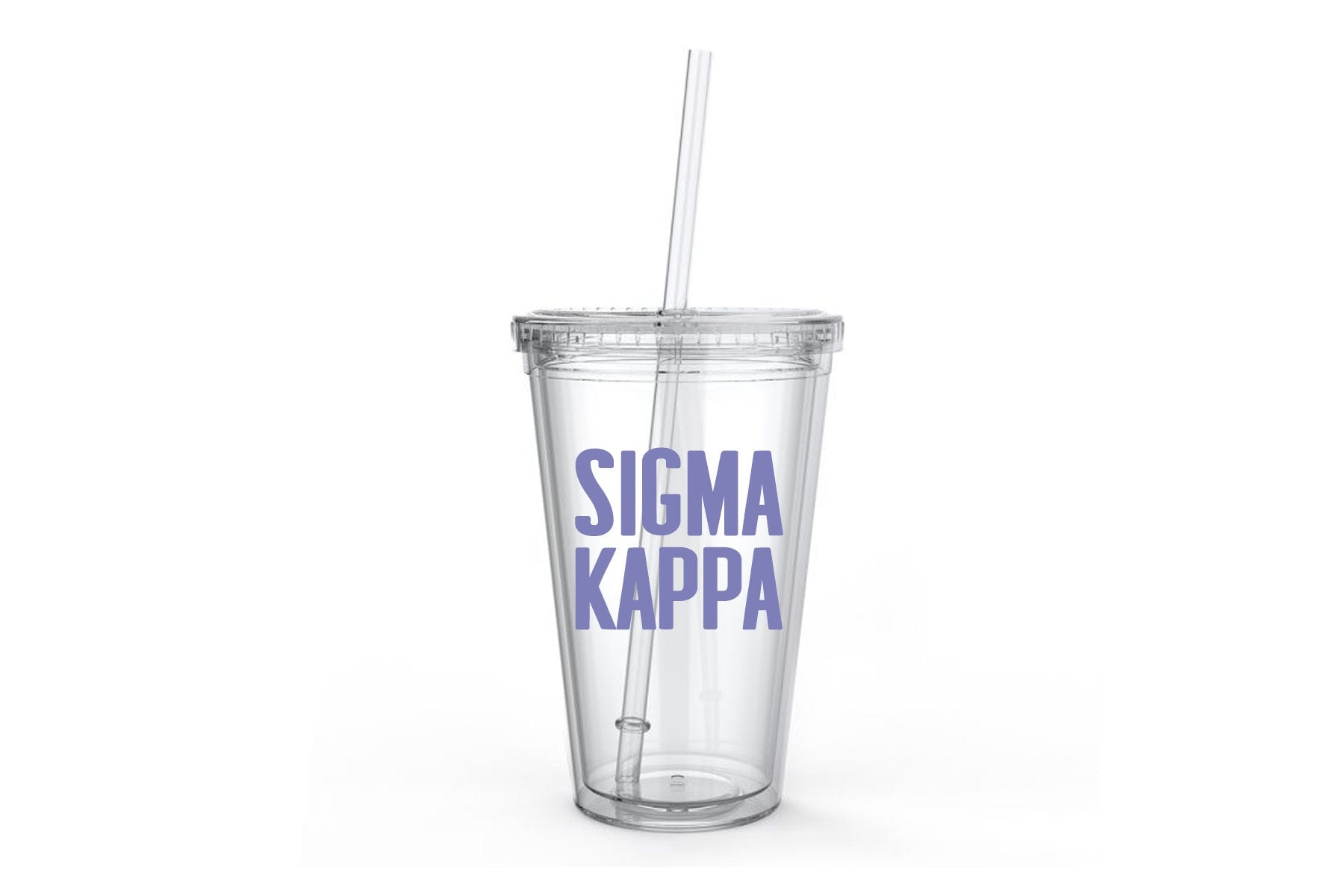 Elevate your sorority experience with our Classic Sigma Kappa tumbler. Crafted with durable double walls to prevent condensation, this 16-ounce tumbler is perfect for all your on-the-go needs. Complete with a twist-on lid and a convenient straw, it's both stylish and functional. The SK logo comes in 11 different colors including Hot Pink, Deep Purple, Sky Blue, Black, Blue, Lime Green, Red, Yellow, Lavender, Soft Pink and White.